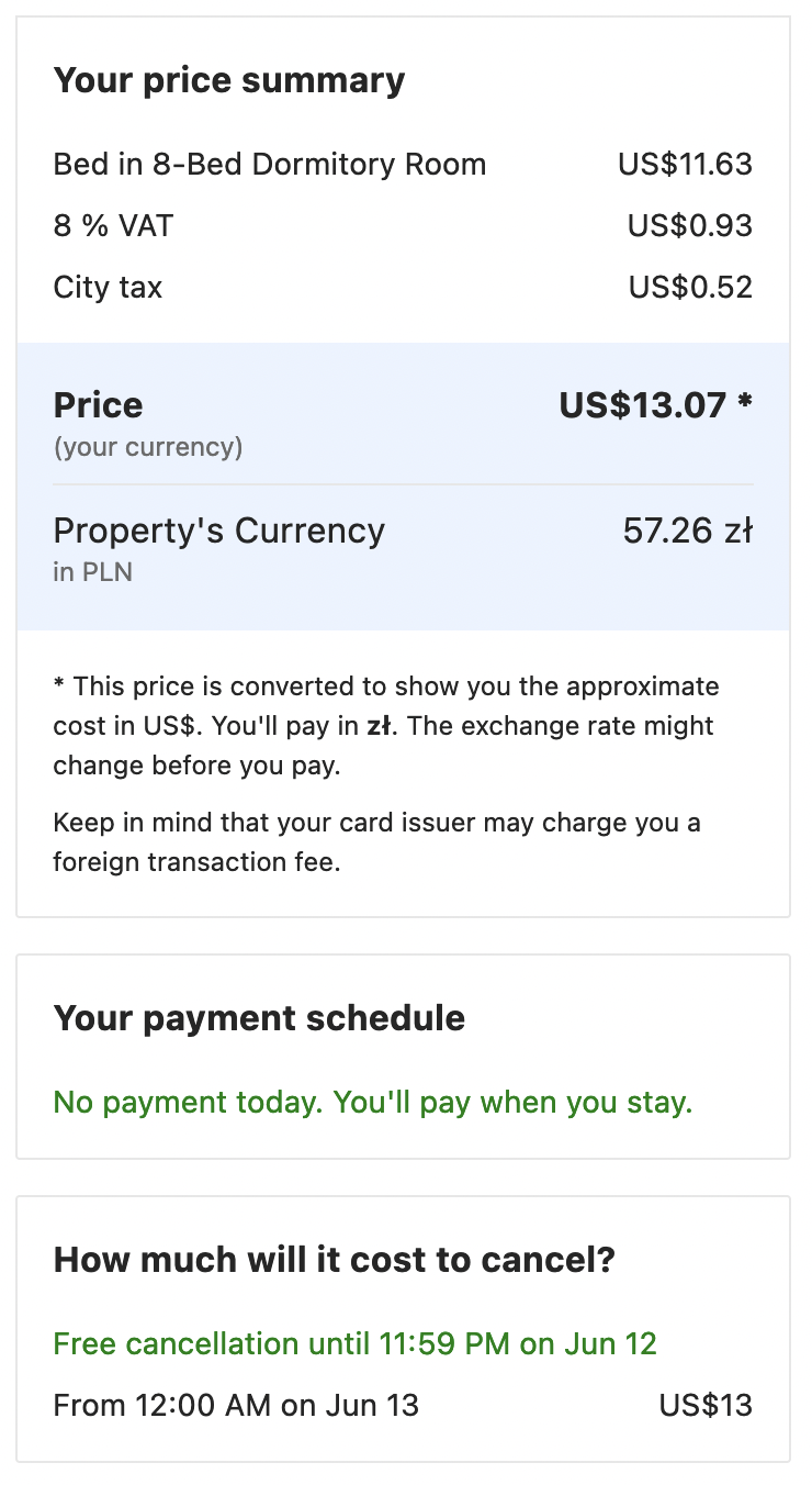 For a quick showcase of what you can do with this new feature, we will scrape a single room from booking.com. Please note that this code works as of the day of this post's publication and it may break if the website changes. For the sake of example, we will check the price of some random hostel. In order to know the exact price of the hotel room as well as how much would it cost to cancel the reservation, we need to: